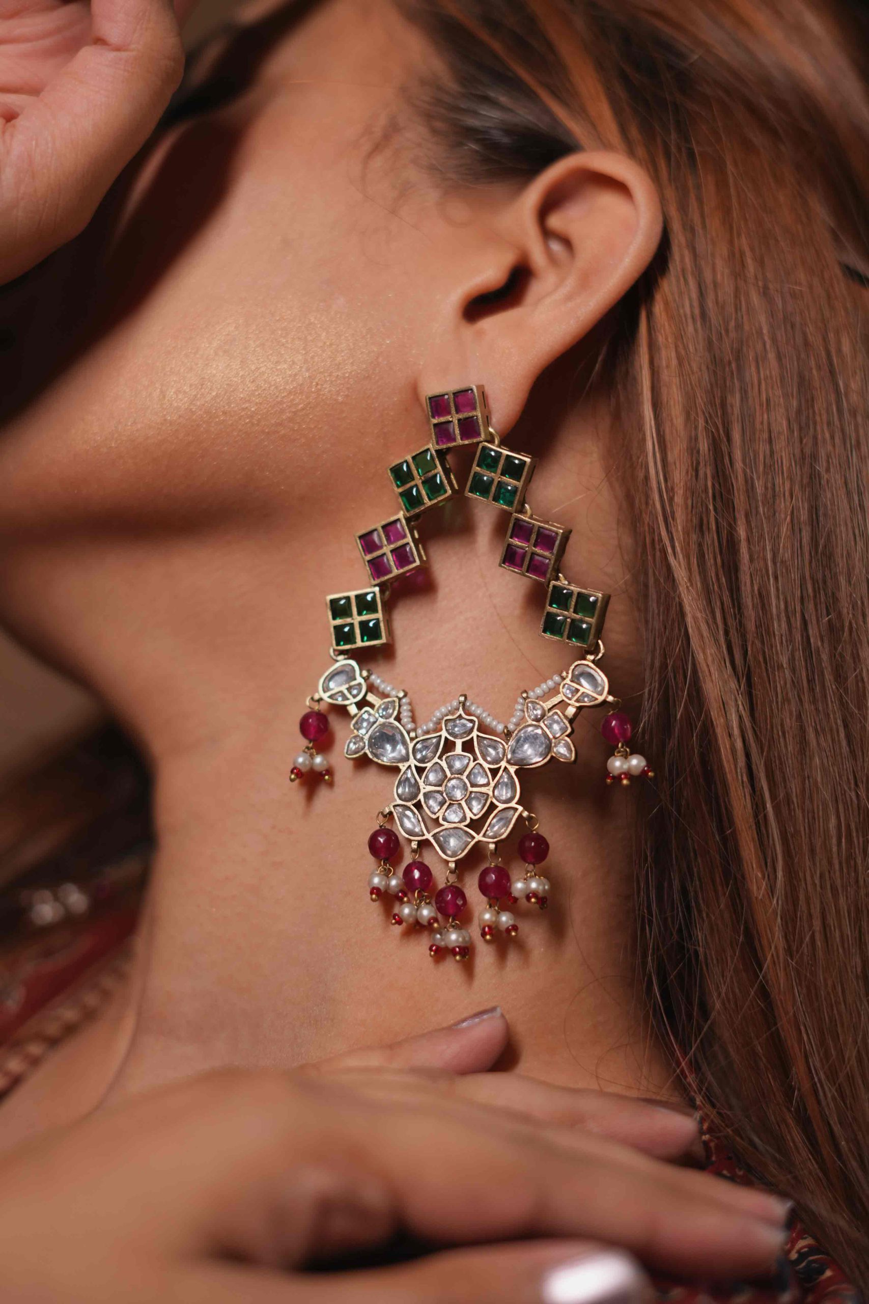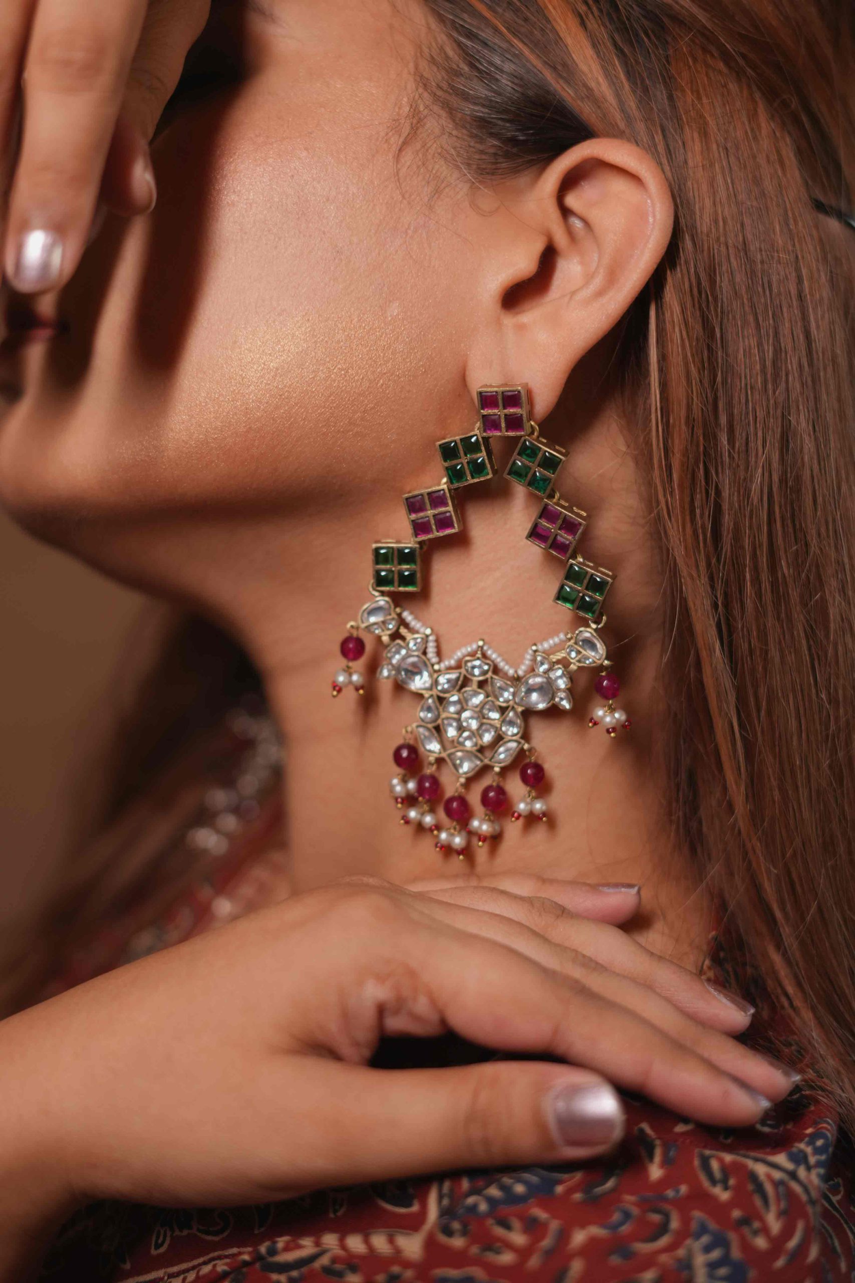 With their lightweight feel and intricate artistry, these earrings seamlessly complement ethnic ensembles—whether it’s a Rajputi poshak, lehenga, or saree.
