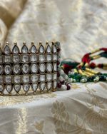 The Rajsi Kundan Aad is a timeless expression of regal beauty. Handcrafted by our skilled artisans, this traditional Aad features fine Kundan stones set in a premium brass base, finished with delicate detailing inspired by royal Rajasthani heritage.