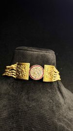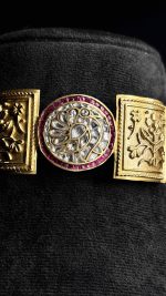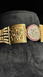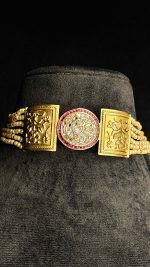 Celebrate your big day with the Svarna Aad , a mesmerizing blend of tradition, colour, and elegance. Crafted with vibrant stones and delicate small beads, this necklace set exudes timeless charm while adding a touch of regal sophistication to your bridal look. Each piece is intricately designed to capture light and attention, making you the radiant centrepiece of every celebration.